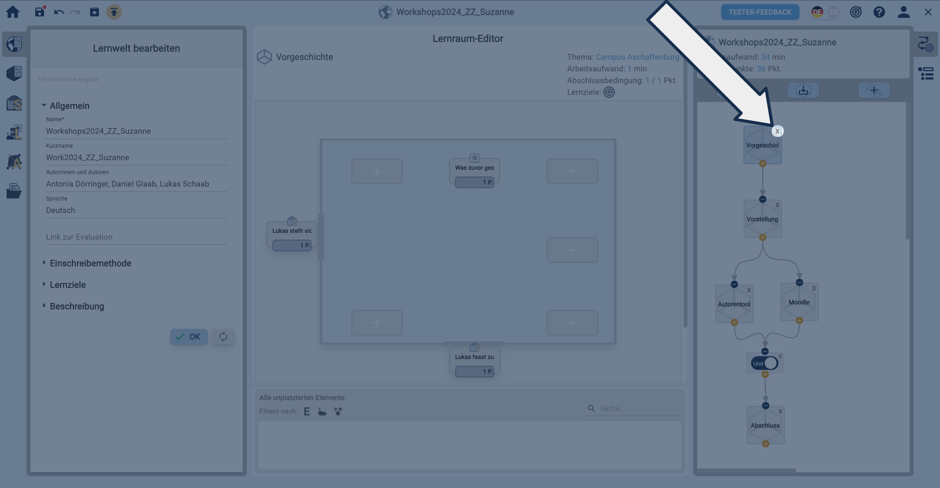 Ein Lernraum kann in der rechten Sidebar über den Tab Verbindungen zwischen Lernräumen gelöscht werden.