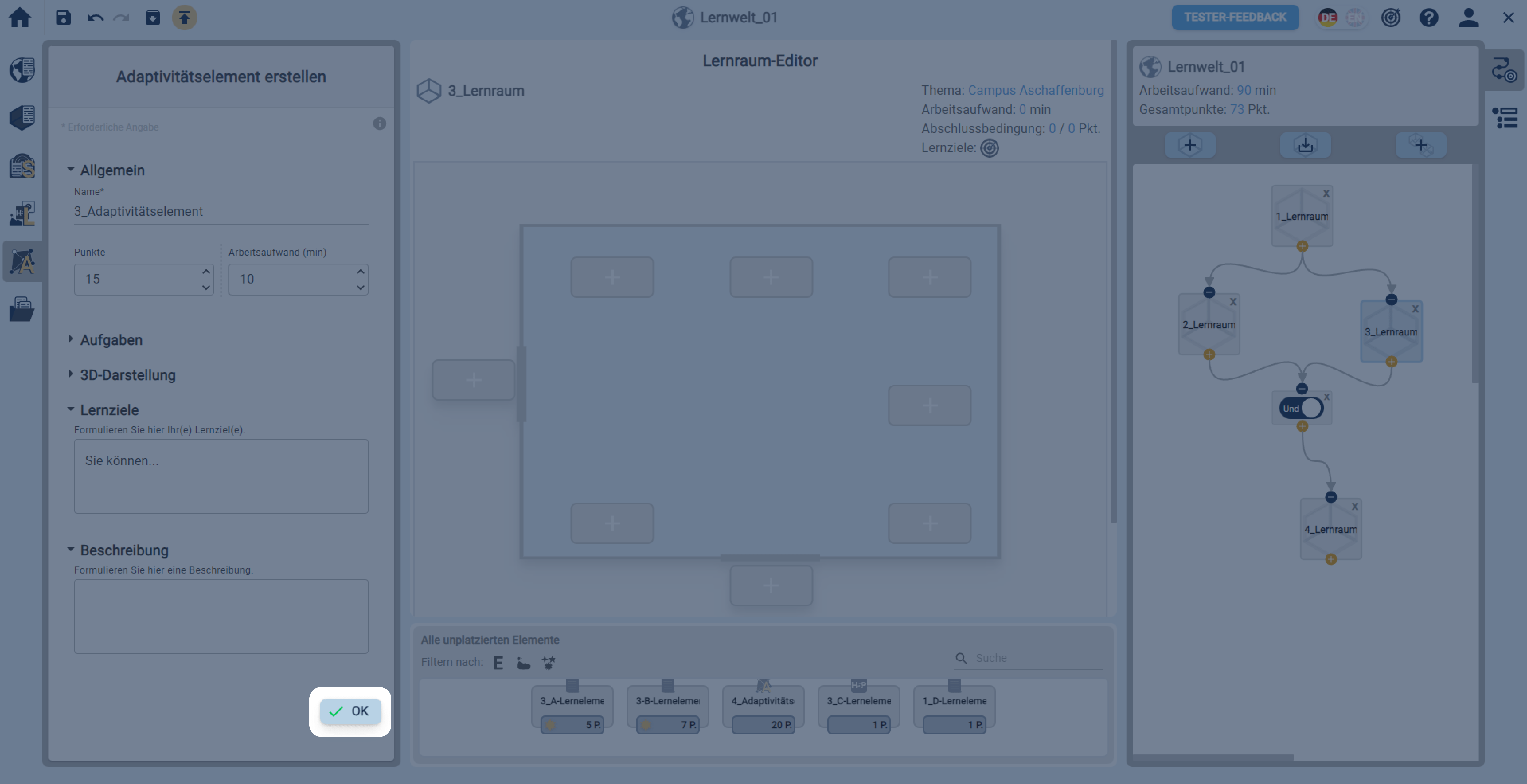 Bestätigen Sie Ihre Angaben zum Adaptivitätselement mit einem Klick auf den Button OK.