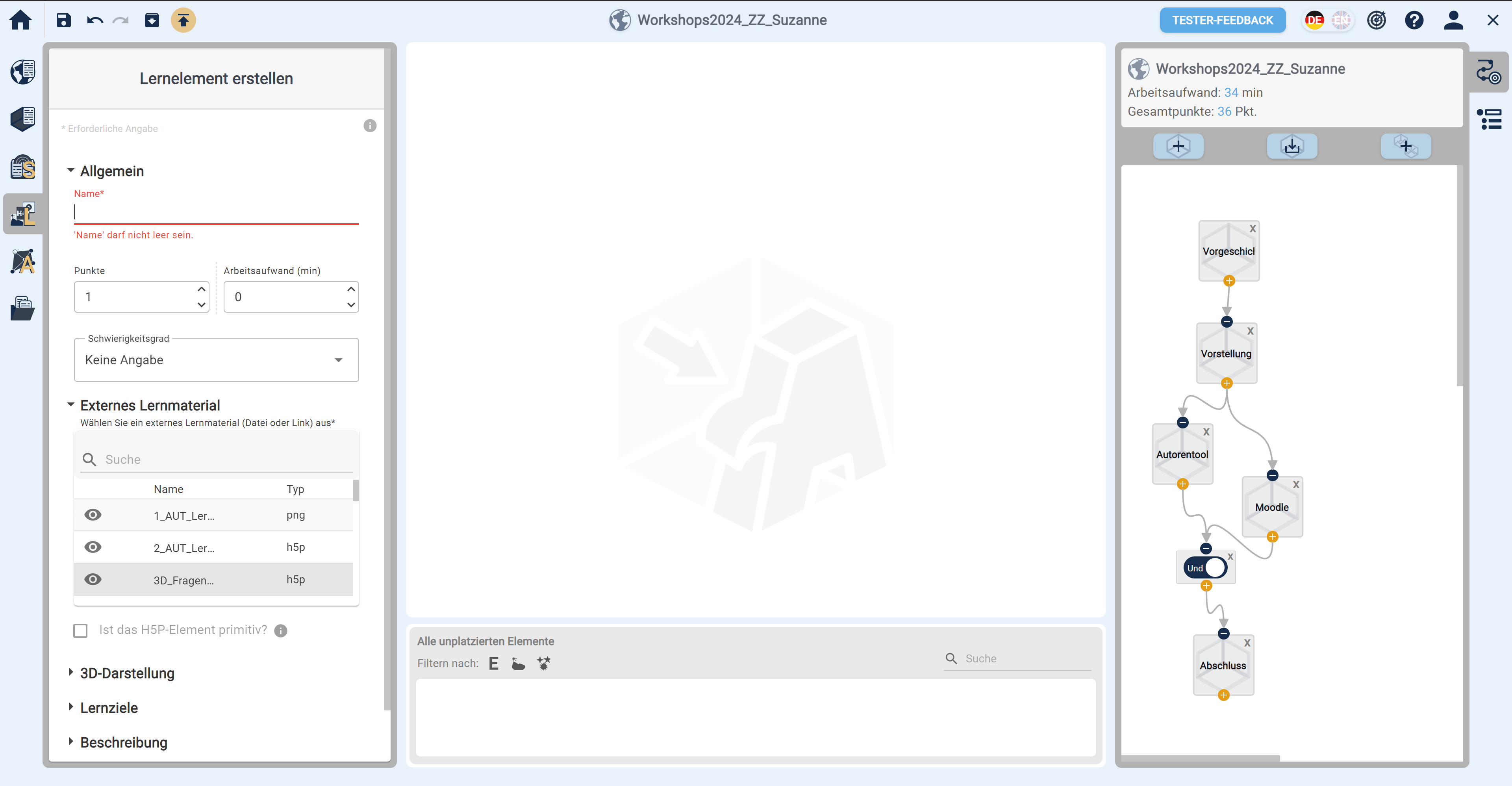 Ein in das Autorentool geladenes externes Lernmaterial als unplatziertes Lernelement bereitstellen.