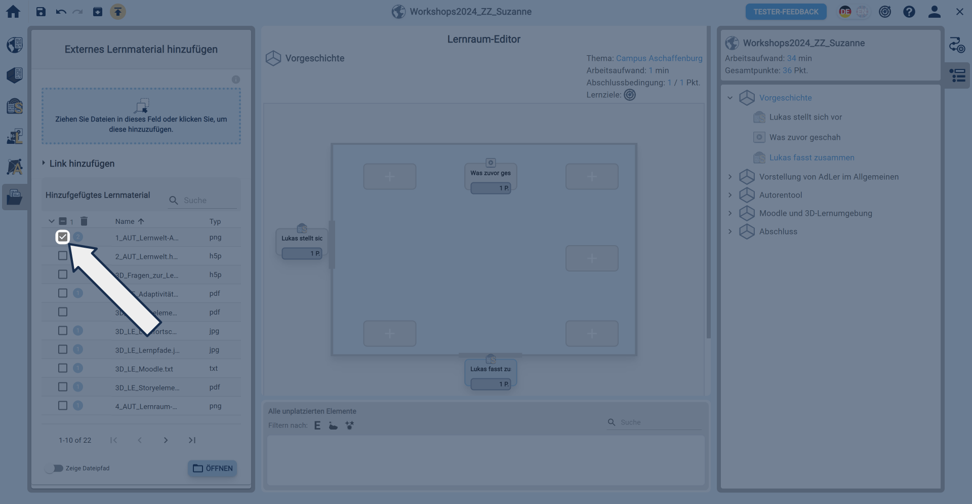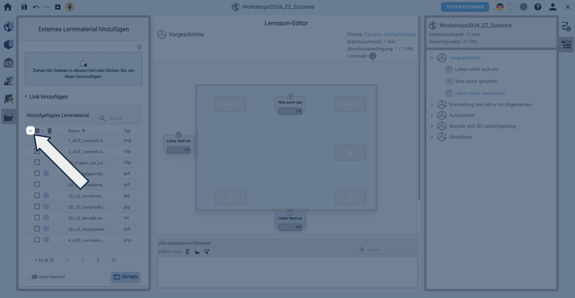 Wählen Sie durch Klicken auf das linke Auswahlkästchen alle Lernmaterialien aus, die Sie löschen möchten.