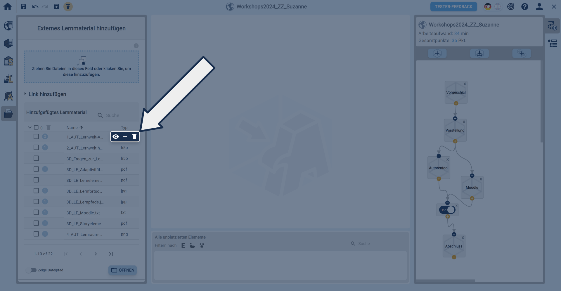 Fahren Sie mit dem Mauszeiger über ein hinzugefügtes Lernmaterial.