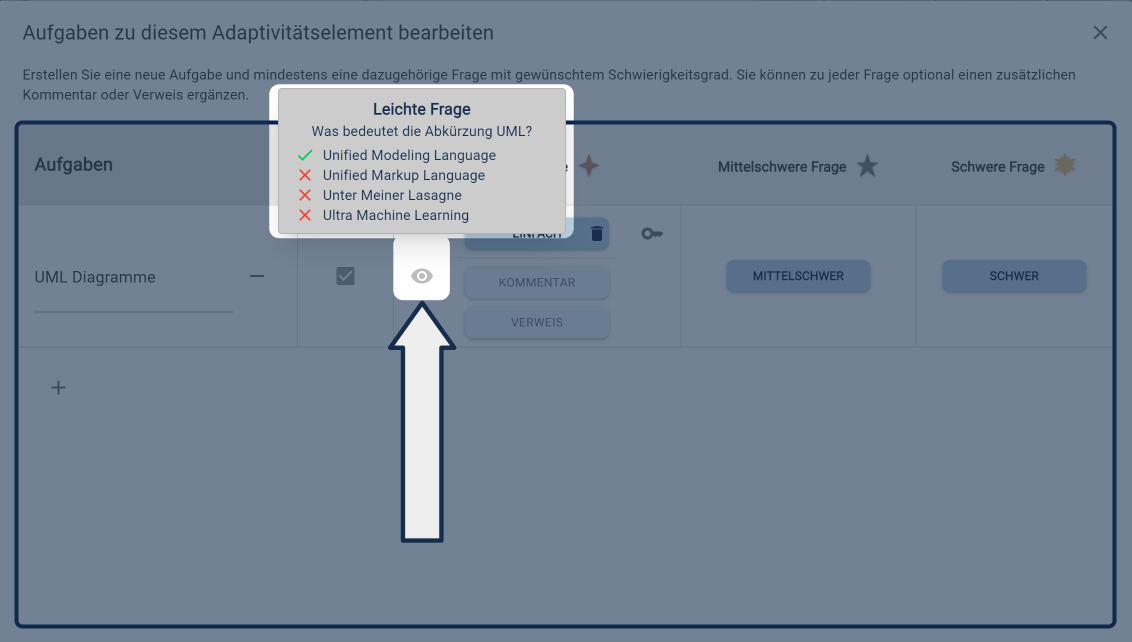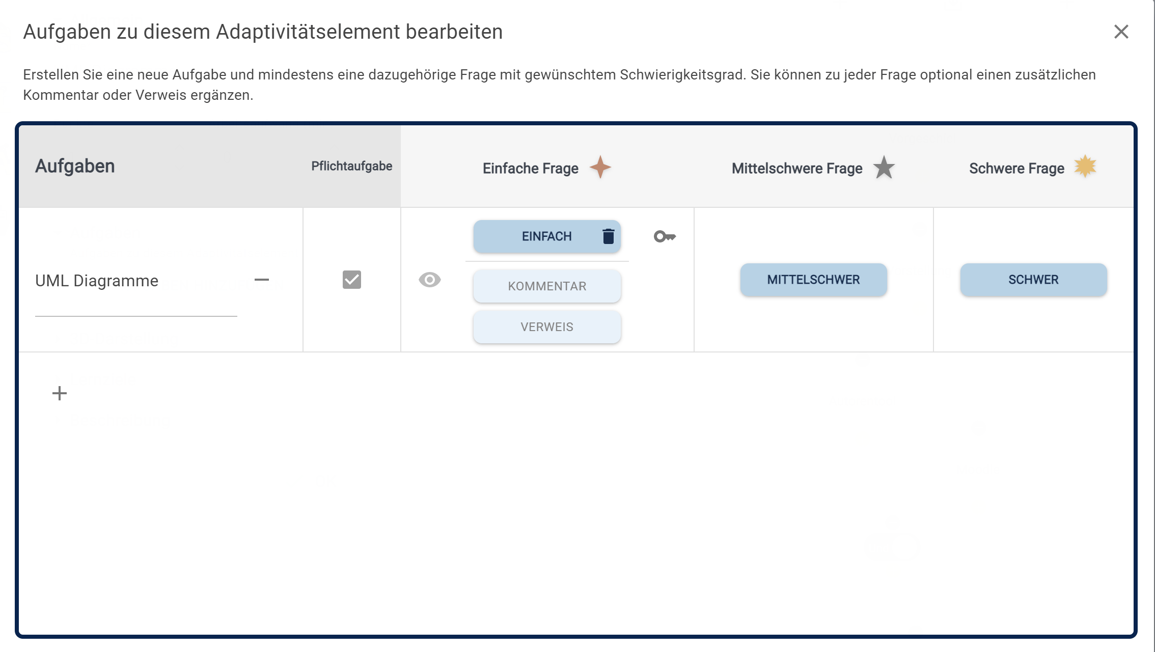 Einer Aufgabe, die innerhalb eines Adaptivitätselements erstellt wurde, eine Frage hinzufügen.