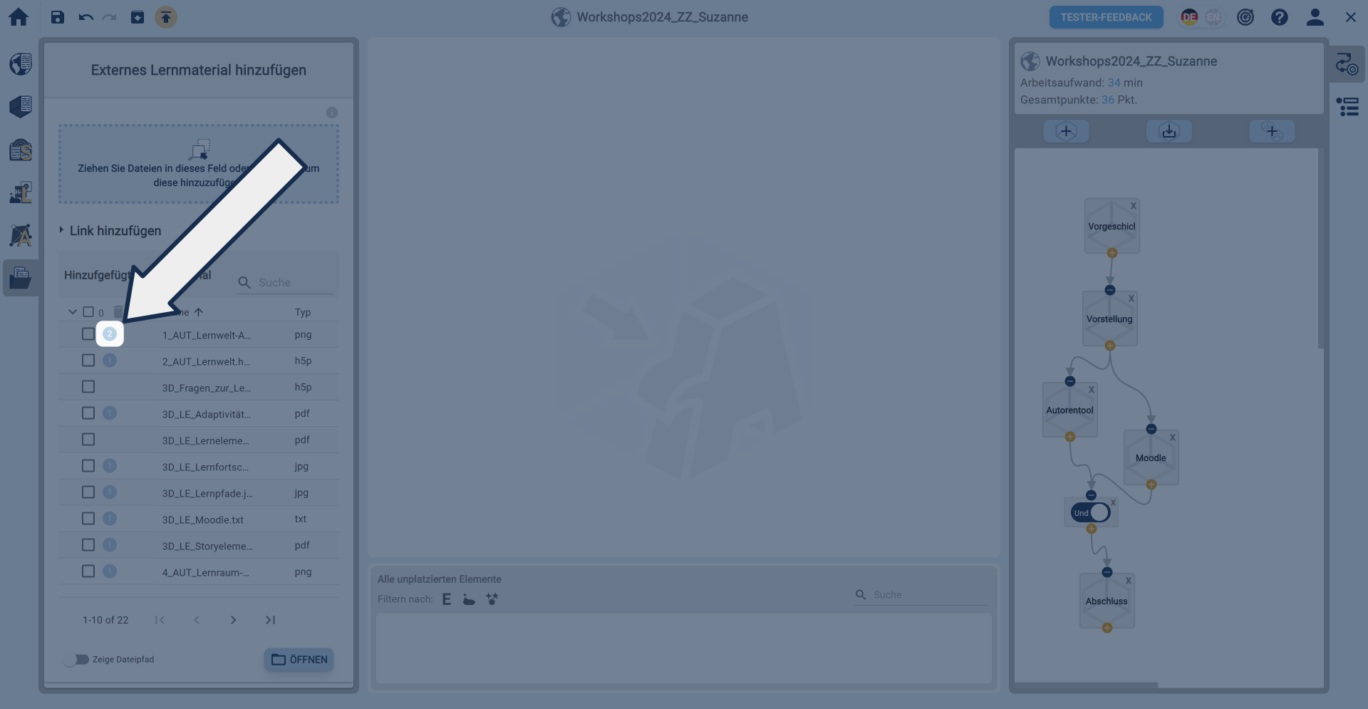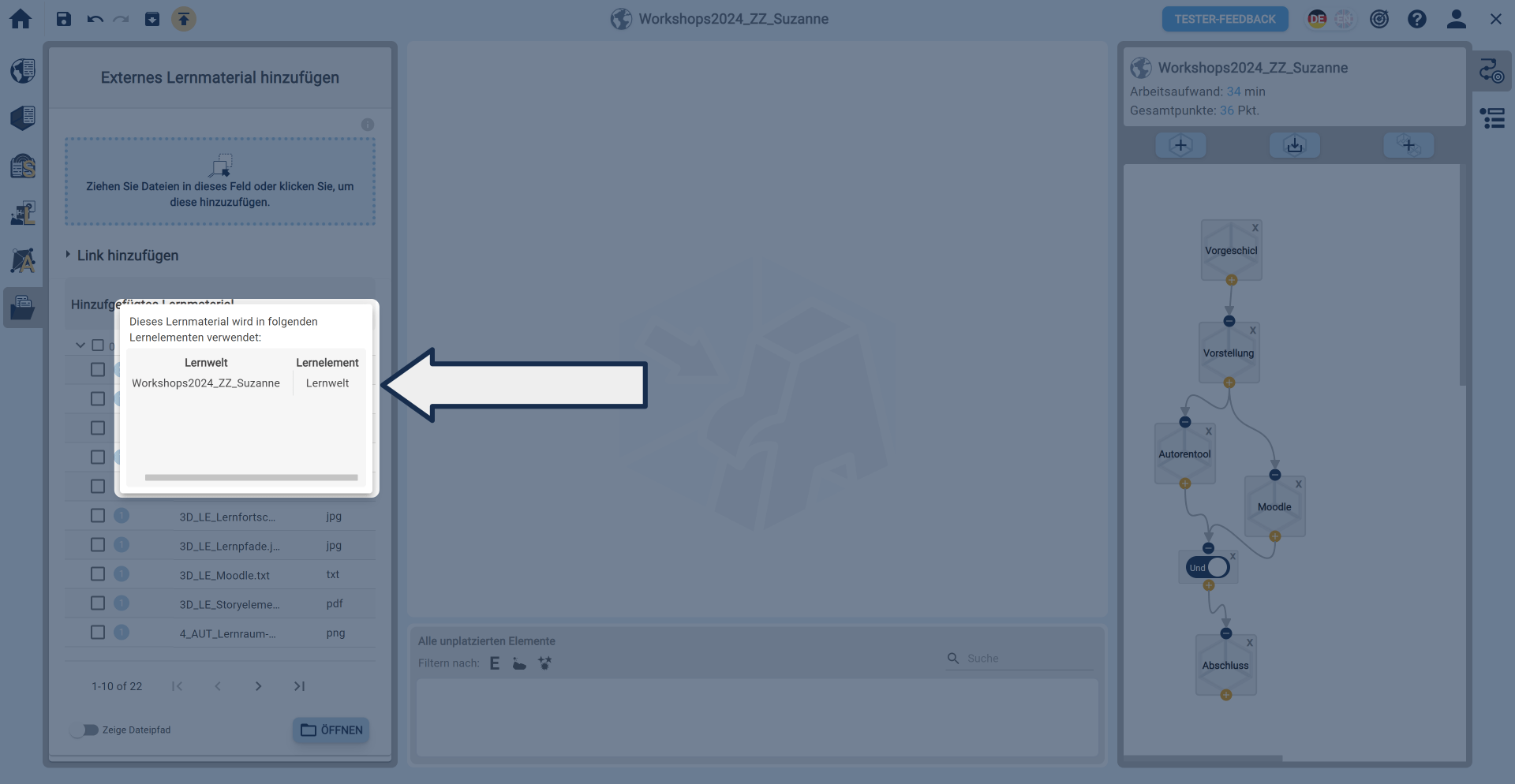 Anzahl und Verwendungsort eines externen Lernmaterials anzeigen lassen (Wie häufig wurde es bereits eingesetzt, in welchem Lernraum und als welches Lernelement?).