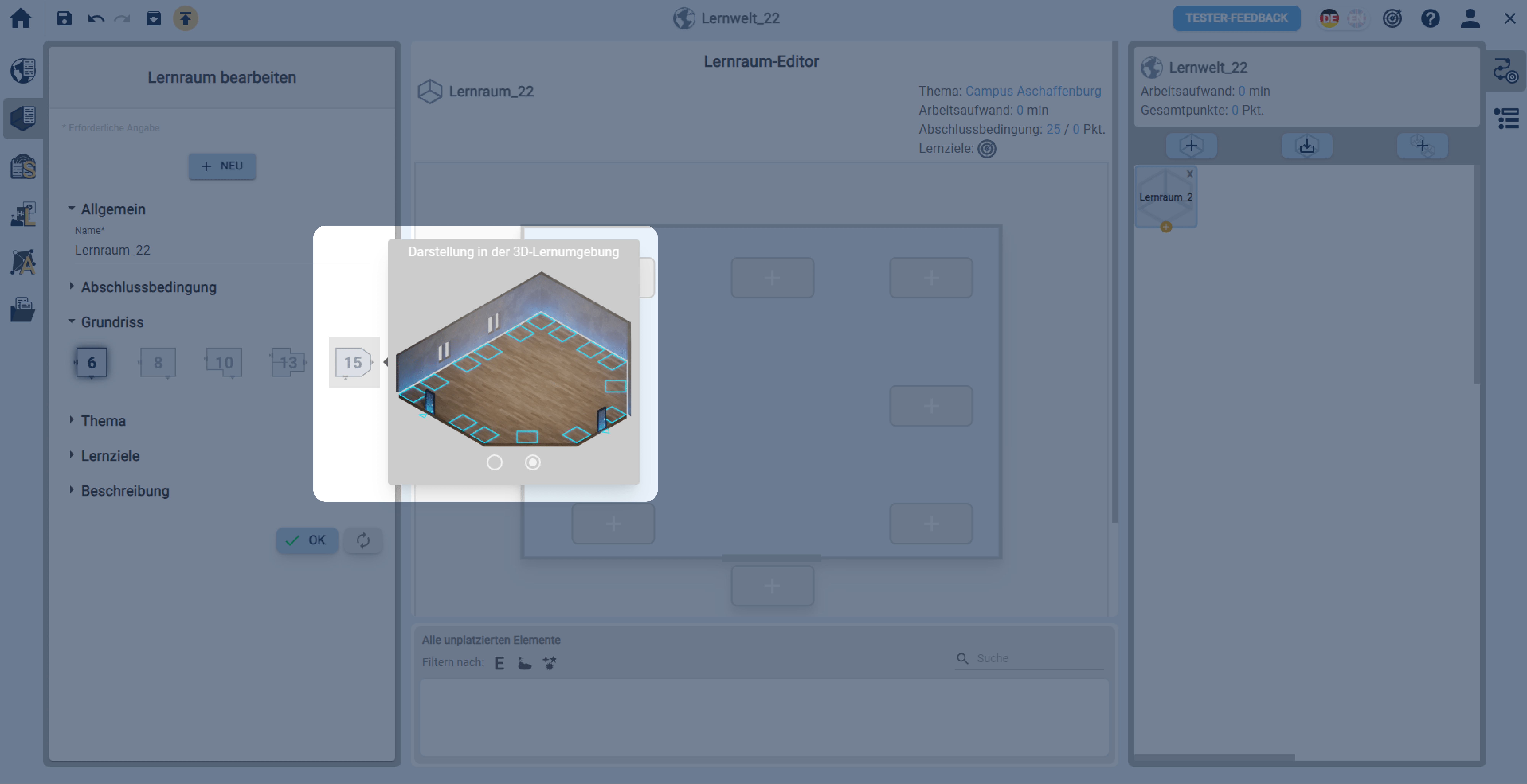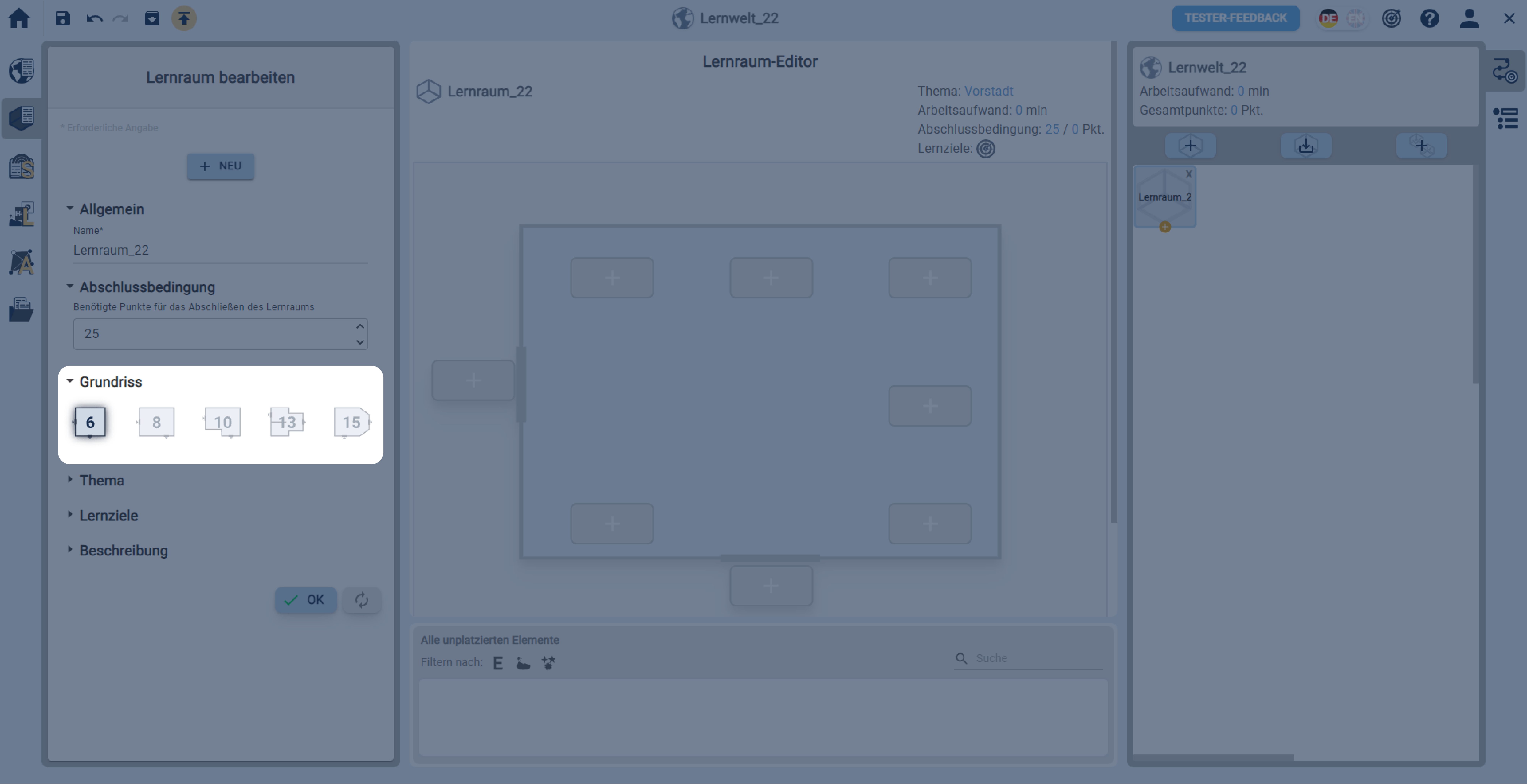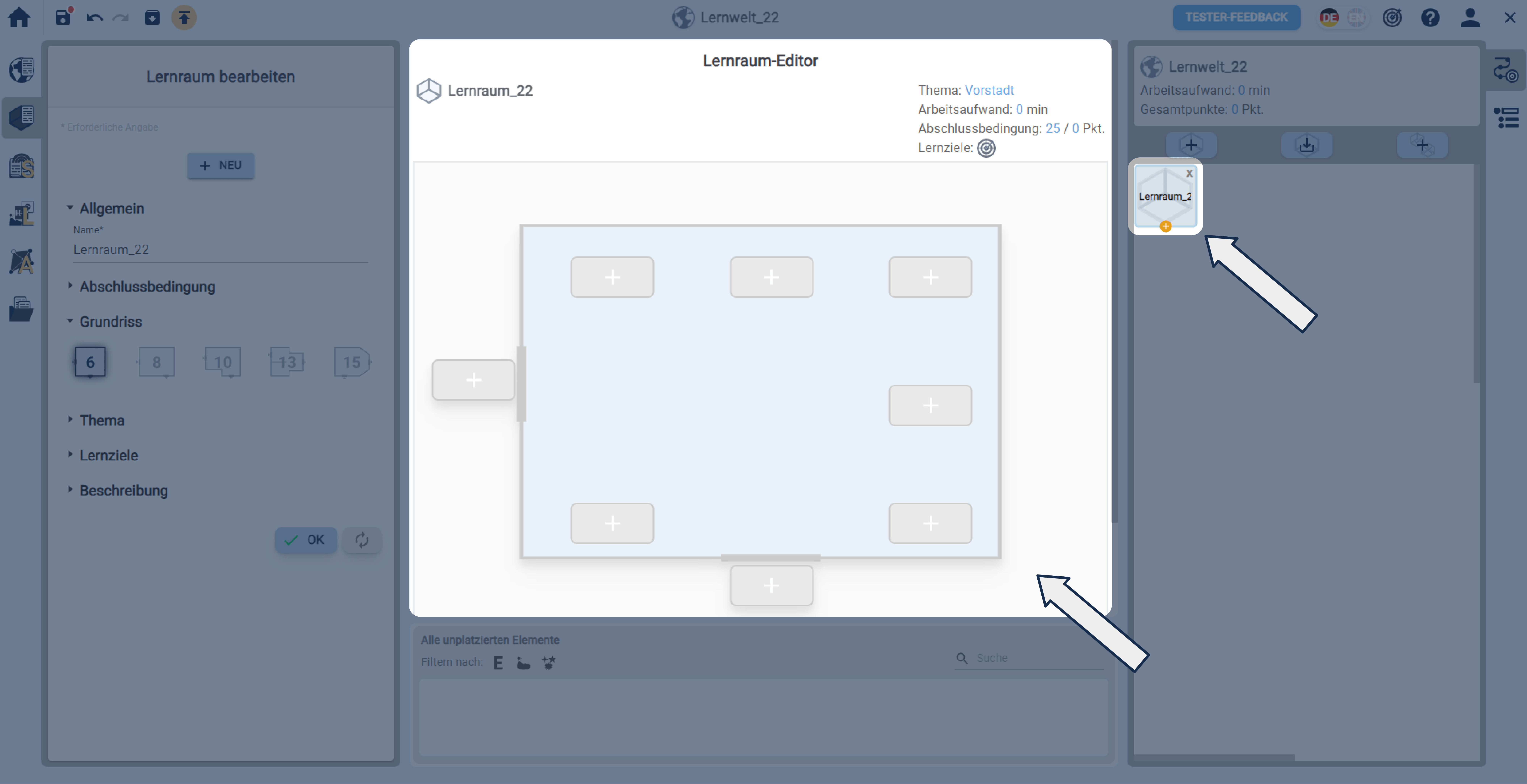 Machen Sie Angaben zum Lernraum.