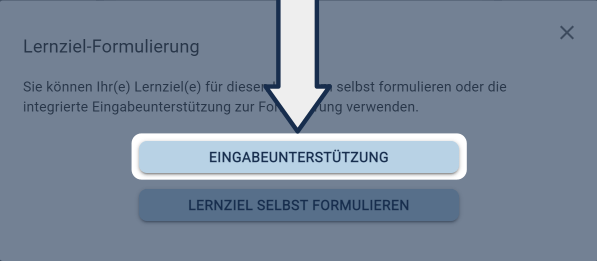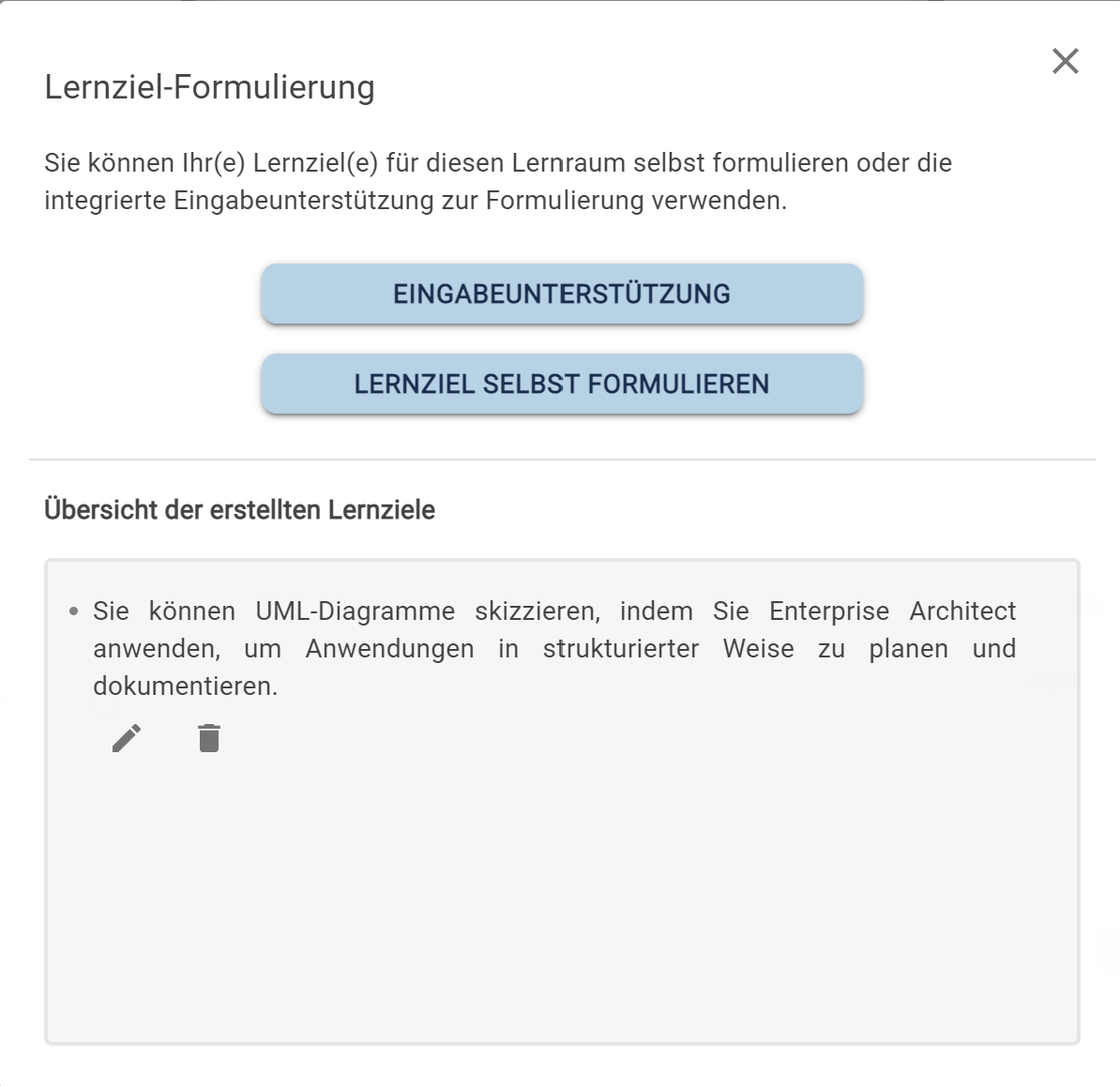 Ein Lernziel zu einem Lernraum mithilfe der Eingabeunterstützung formulieren.