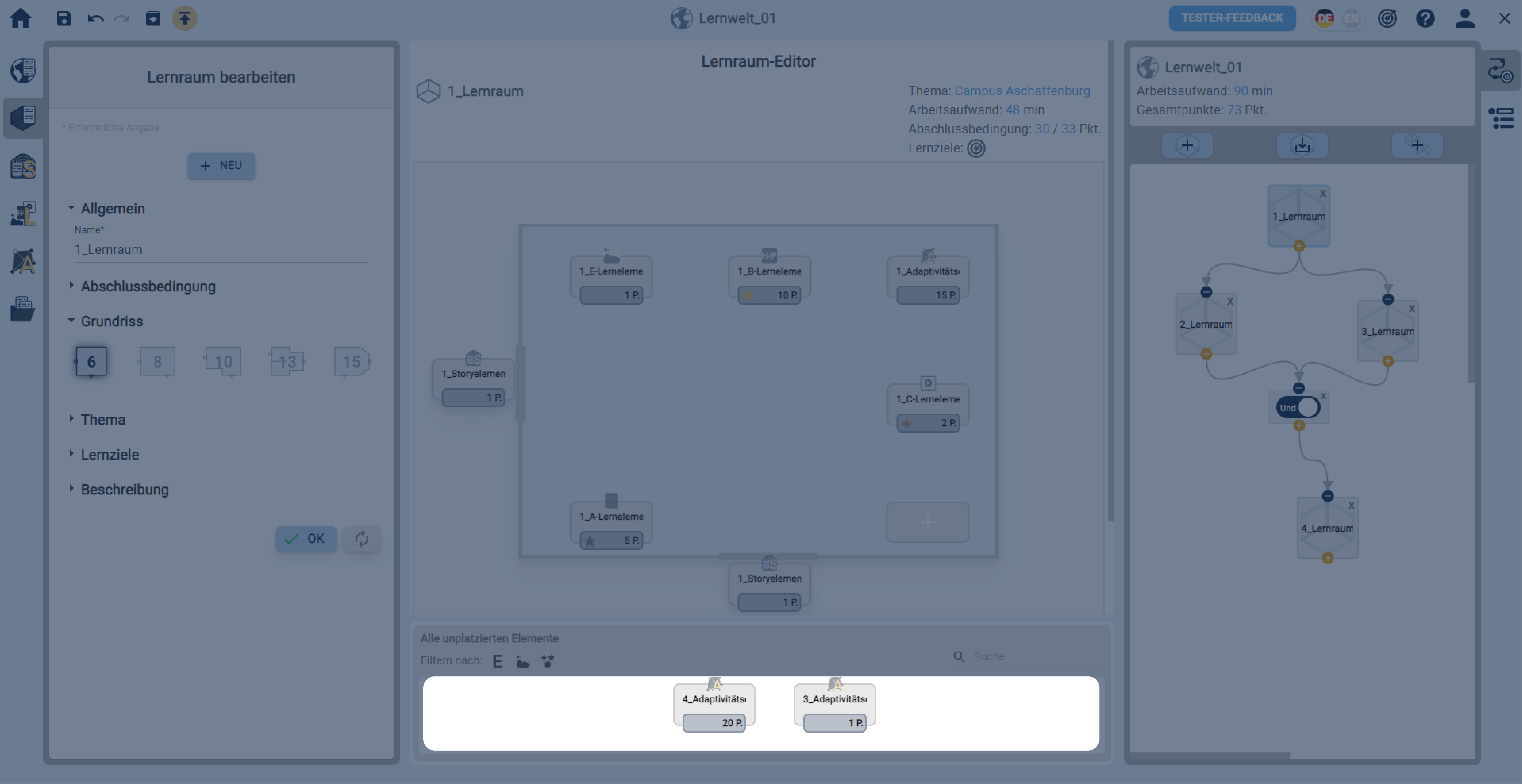 Zur Softwarekomponente: Unplatzierte Elemente.