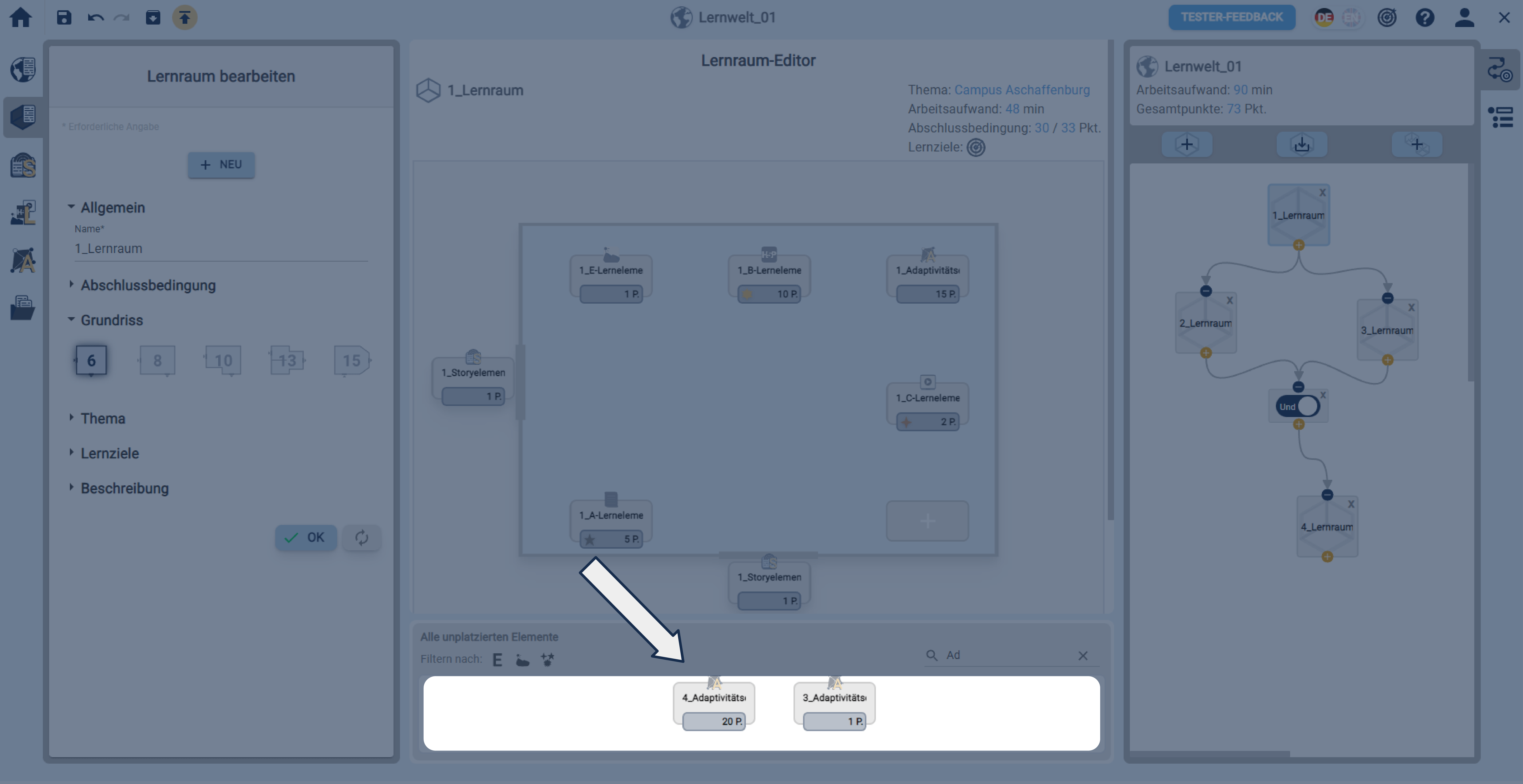 Zur Softwarekomponente: Unplatzierte Elemente.