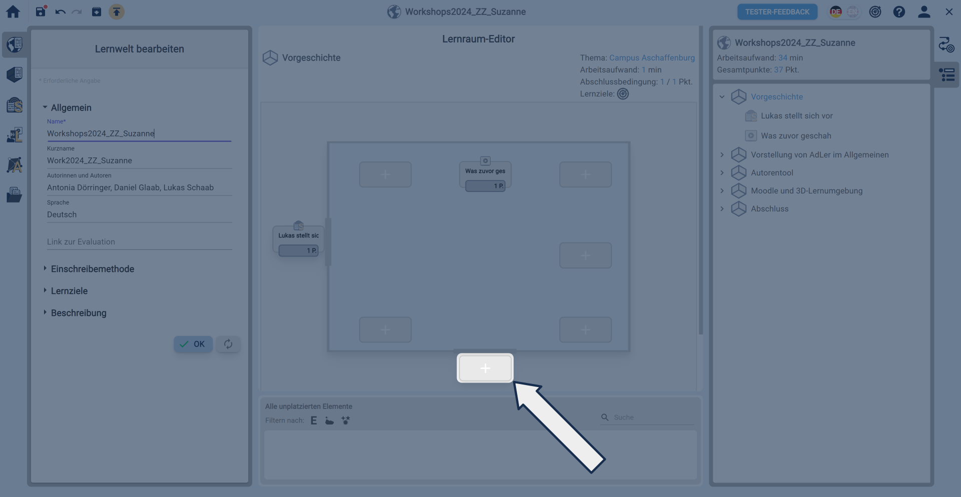 Ein Storyelement im Grundriss eines konkreten Lernraums erstellen.