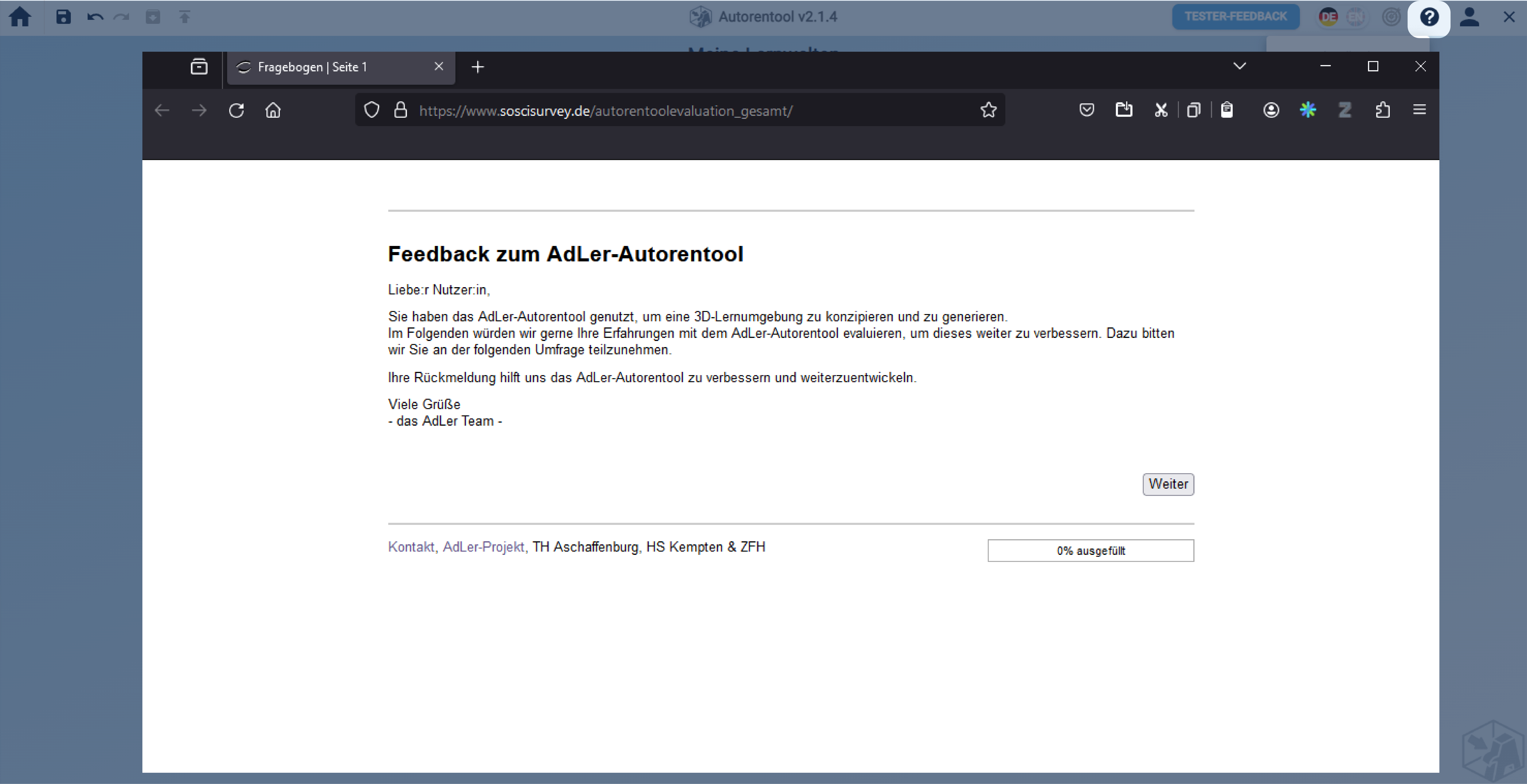 Rückmeldung zur Umsetzung des Autorentools im Gesamten geben.