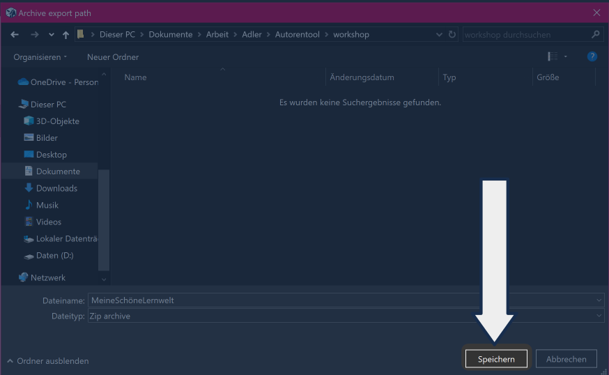 Eine erstellte Lernwelt archivieren und lokal zur späteren Weiterverwendung abspeichern.