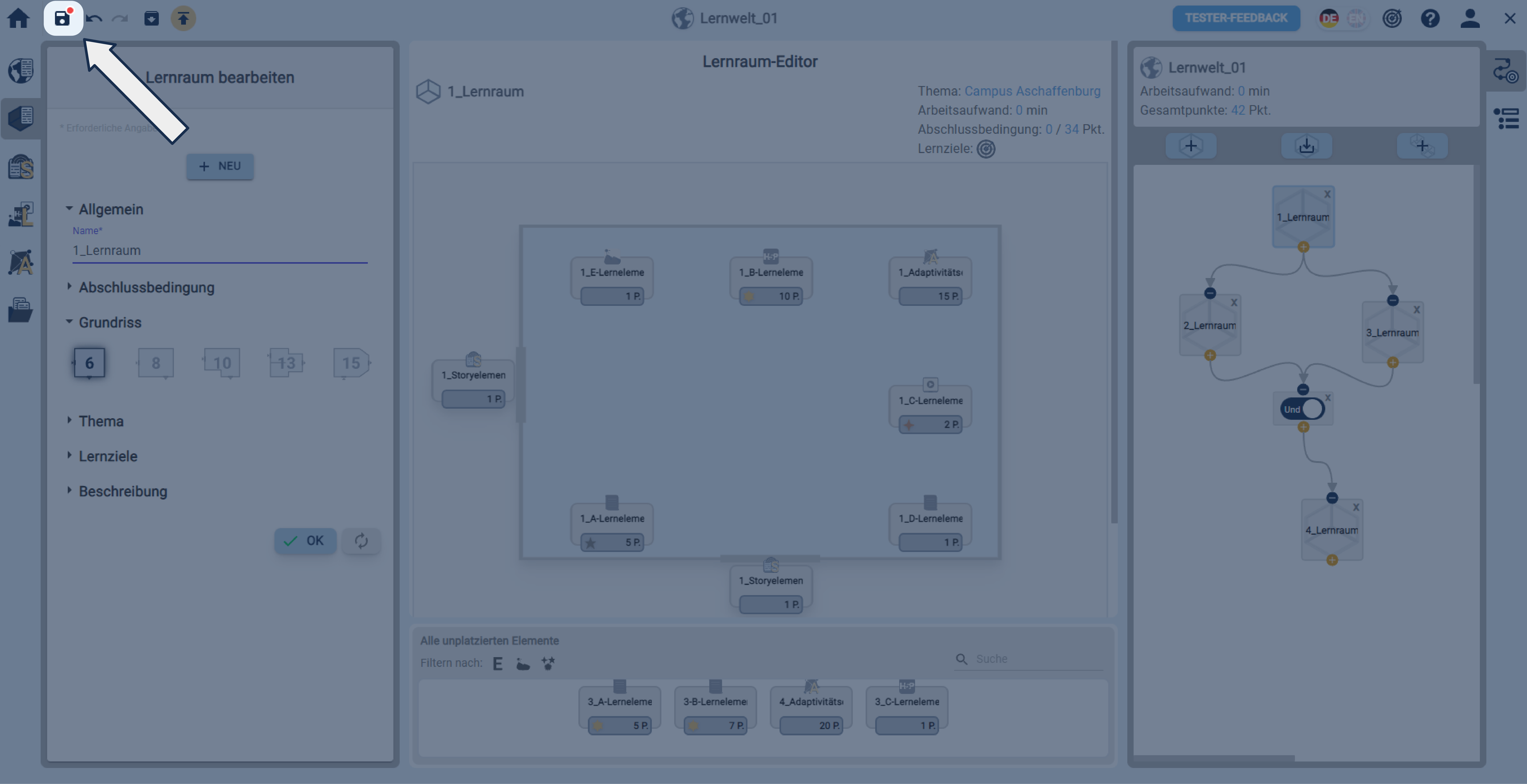 Zu Softwarekomponenten: Kopfzeile auf der Startseite und Kopfzeile in der Arbeitsfläche.