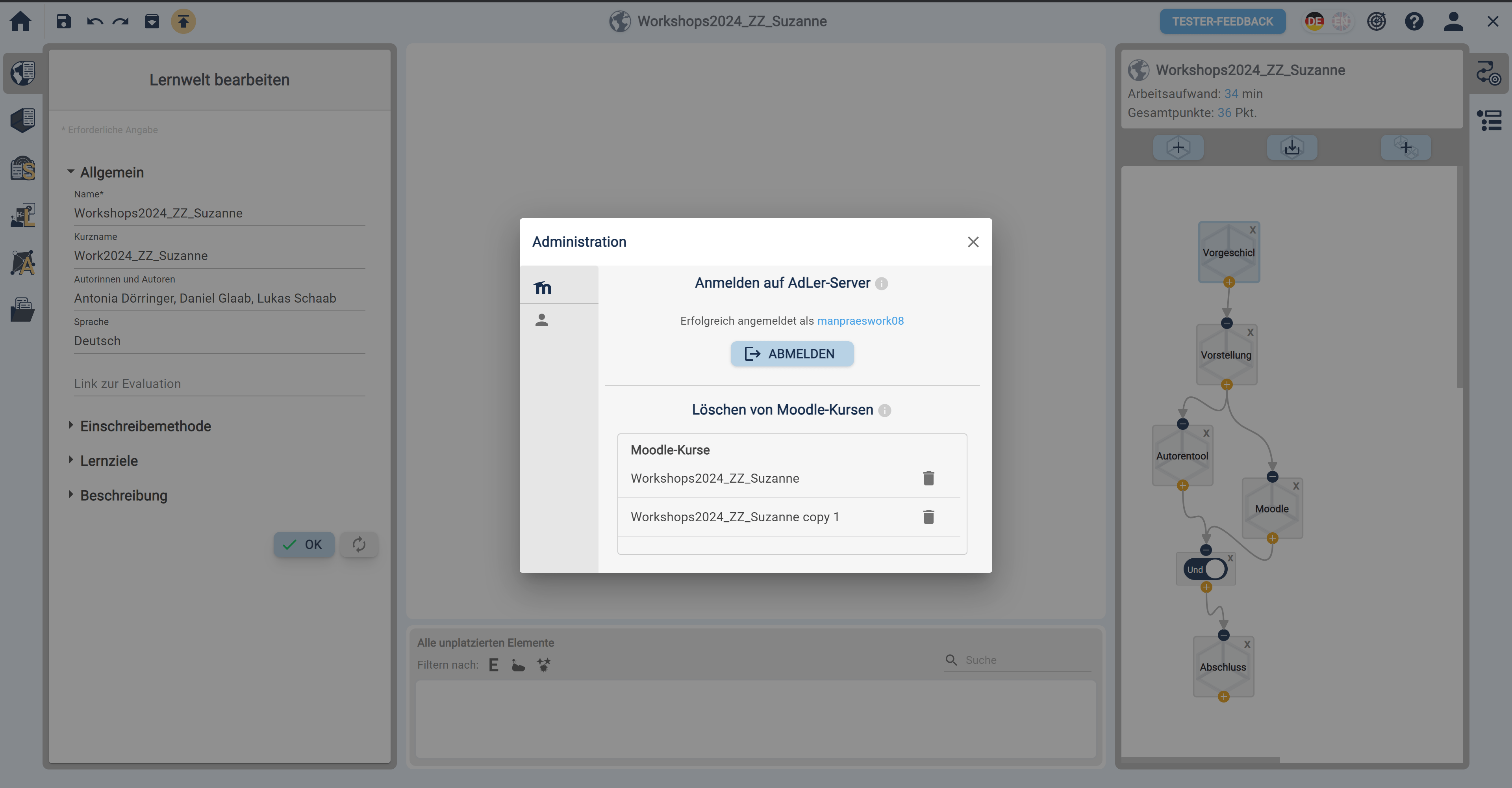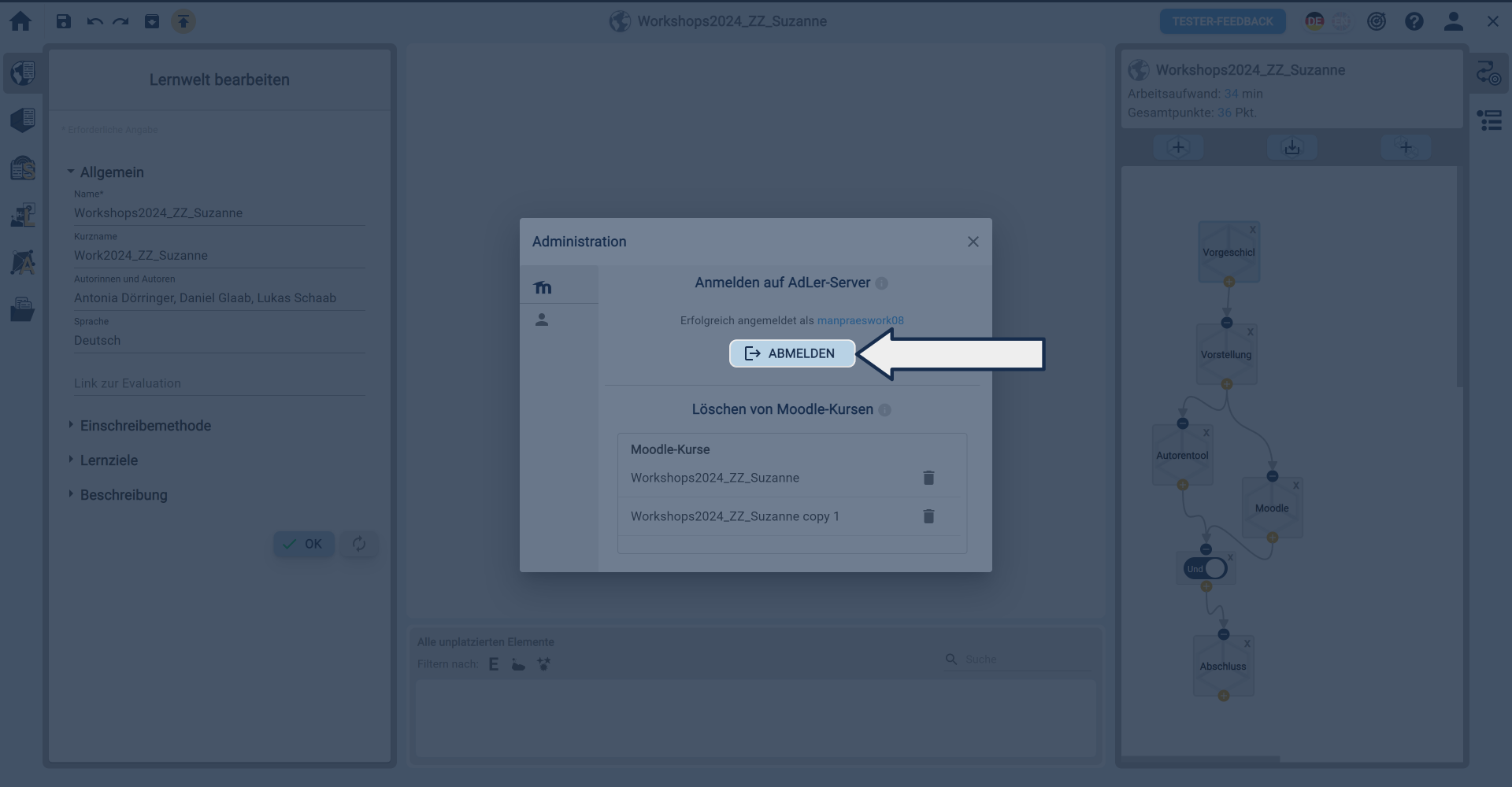 Als Benutzer vom AdLer-Server abmelden.