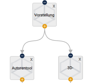 Ein vorangestellter Lernraum kann mit zwei nachfolgenden Lernräumen verbunden werden.