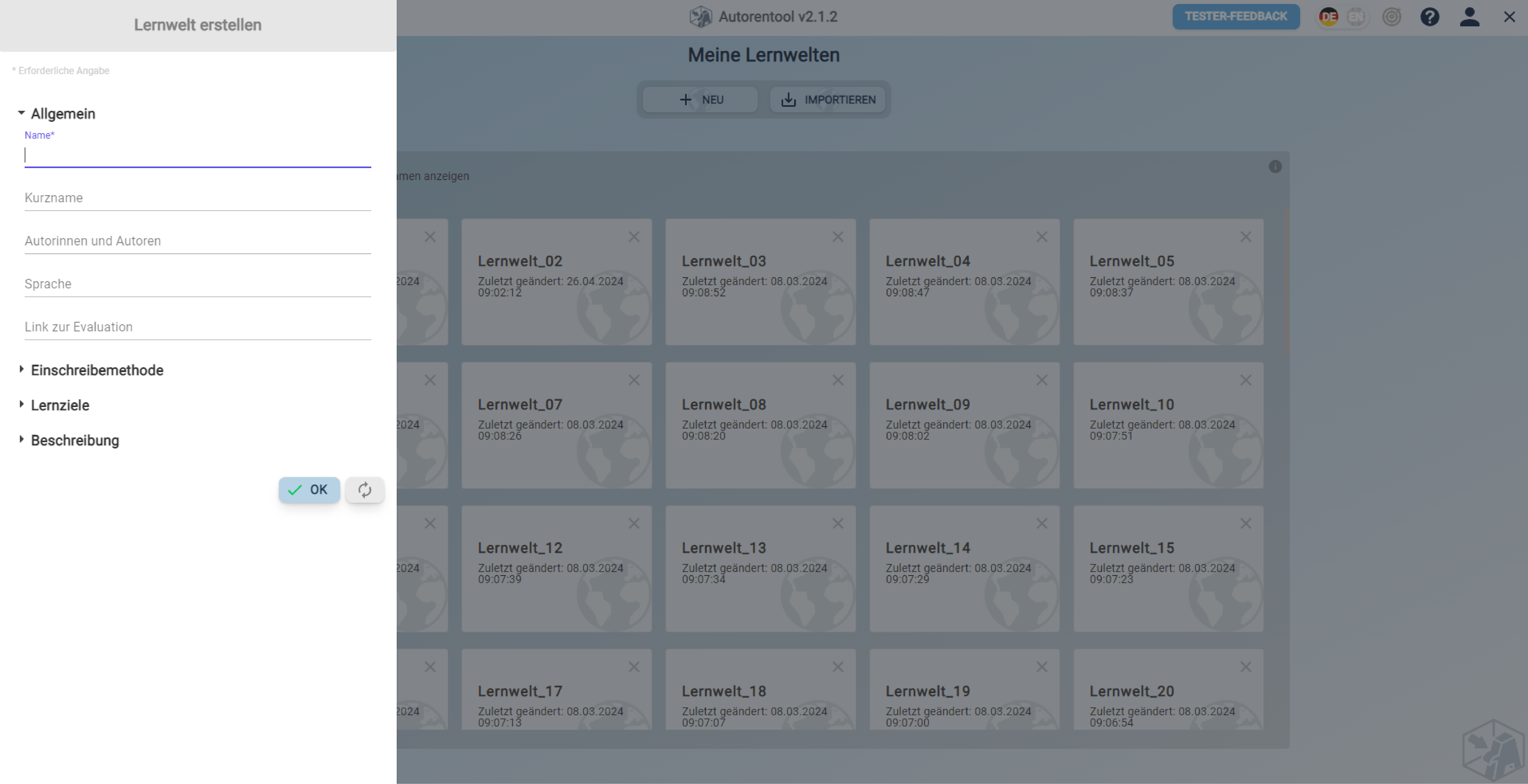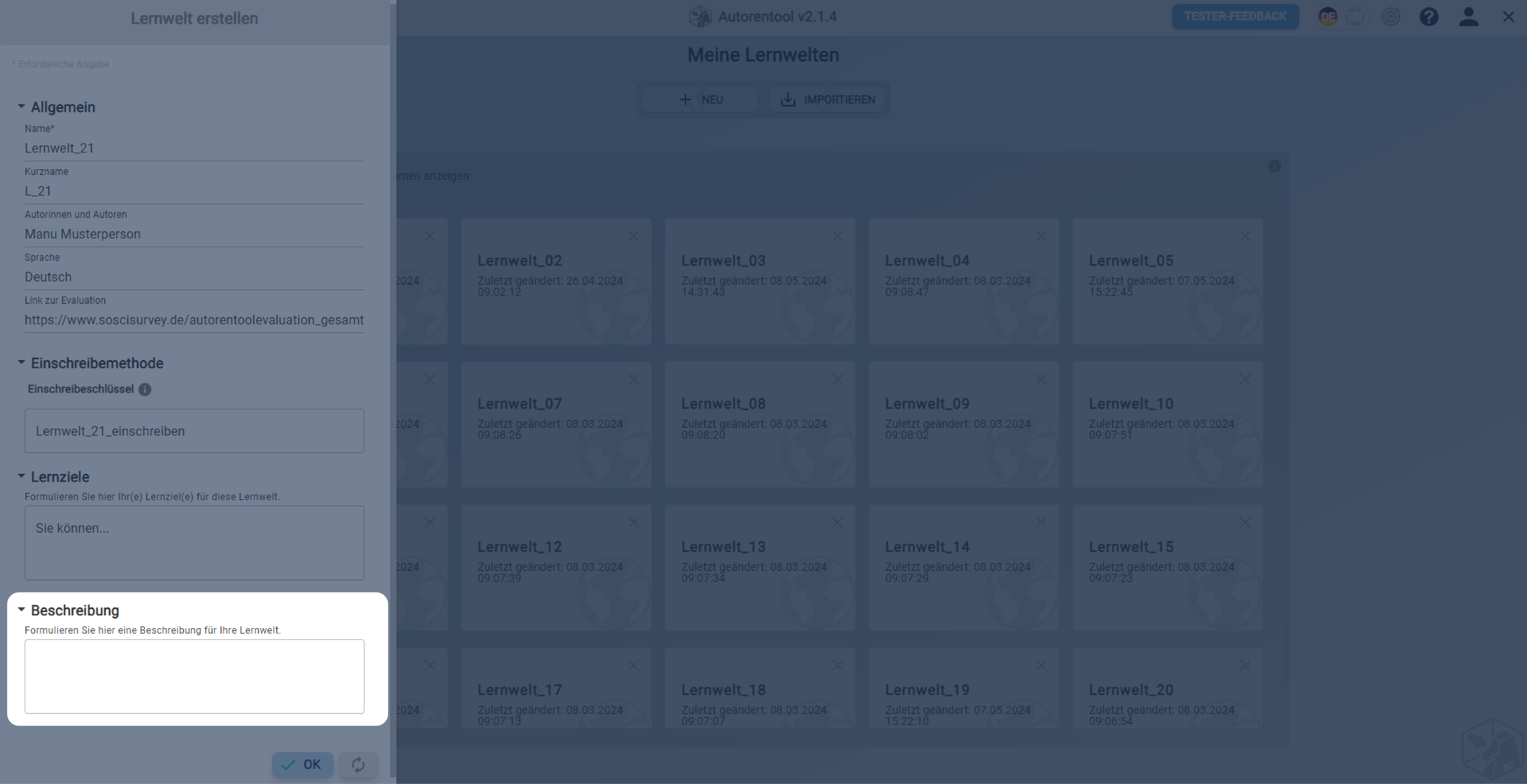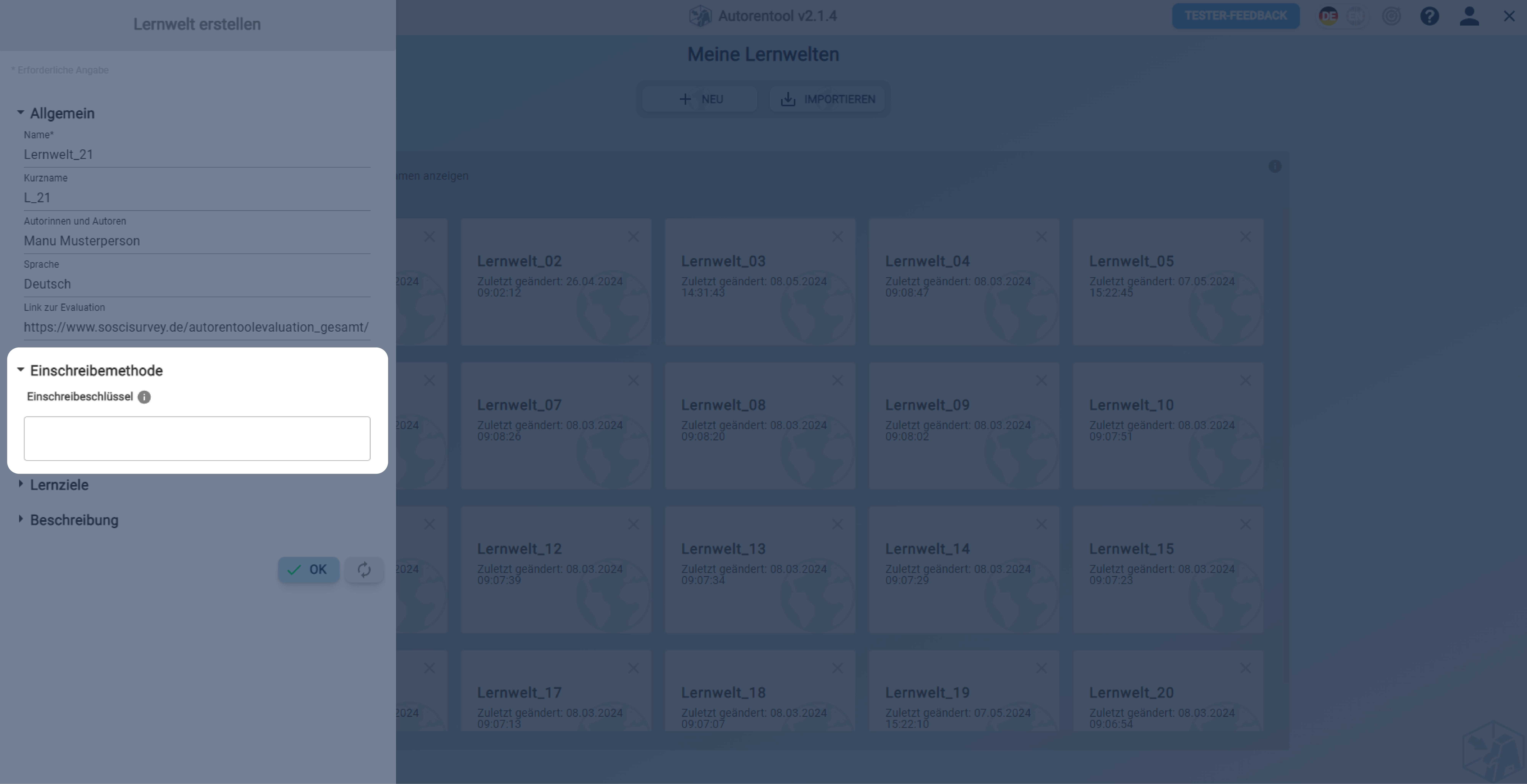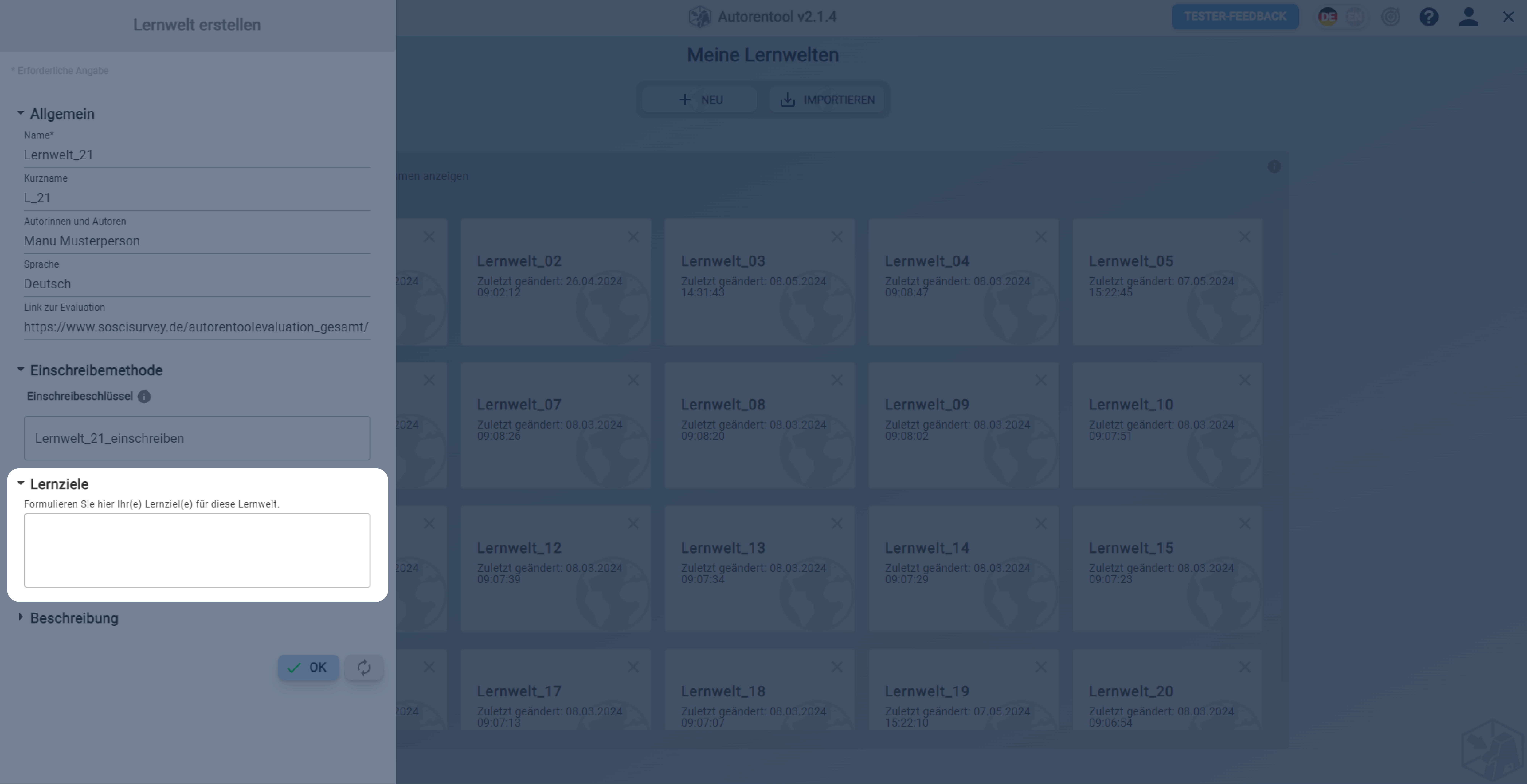 Lernwelt erstellen