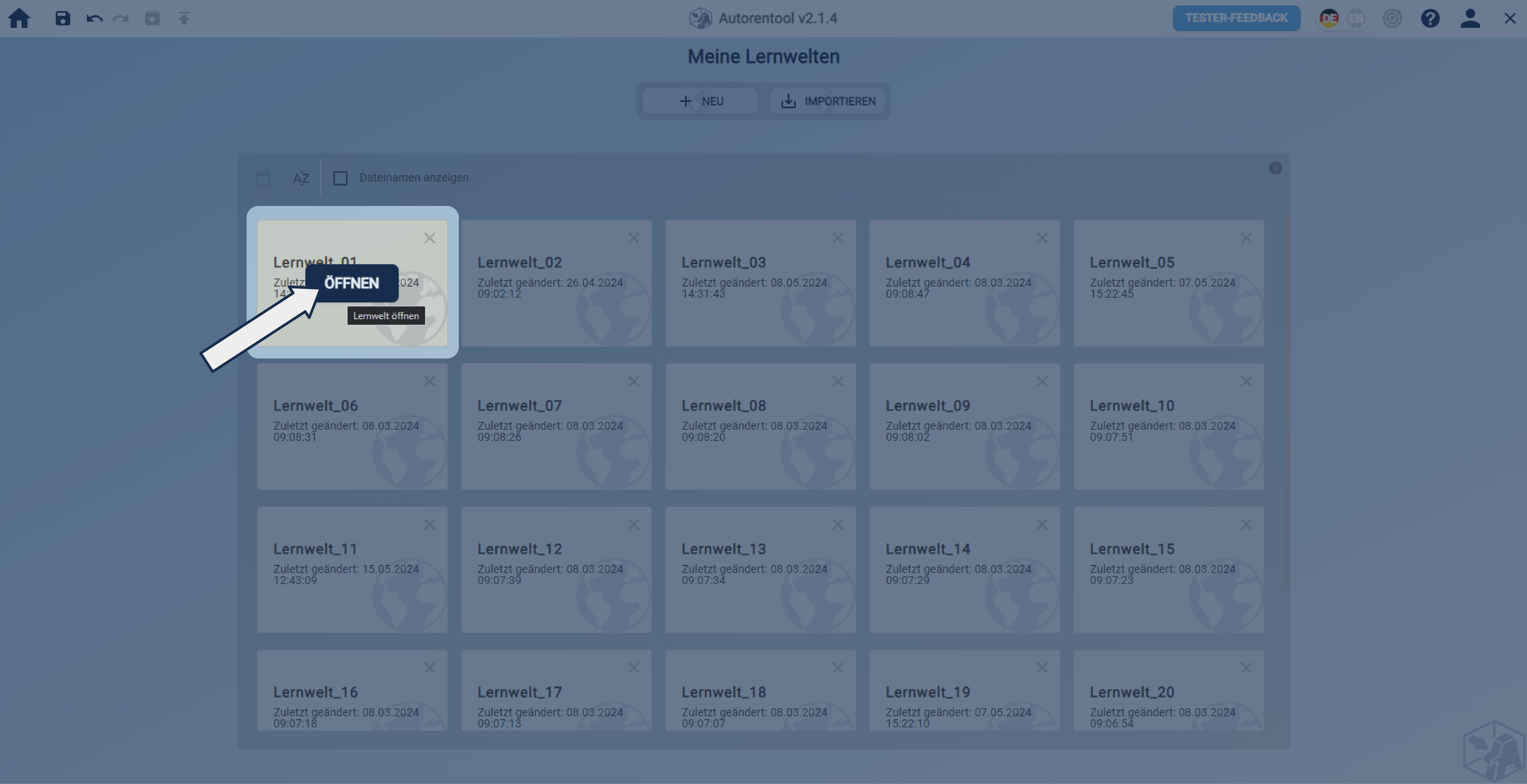 Eine Lernwelt zur weiteren Bearbeitung oder Veröffentlichung öffnen.