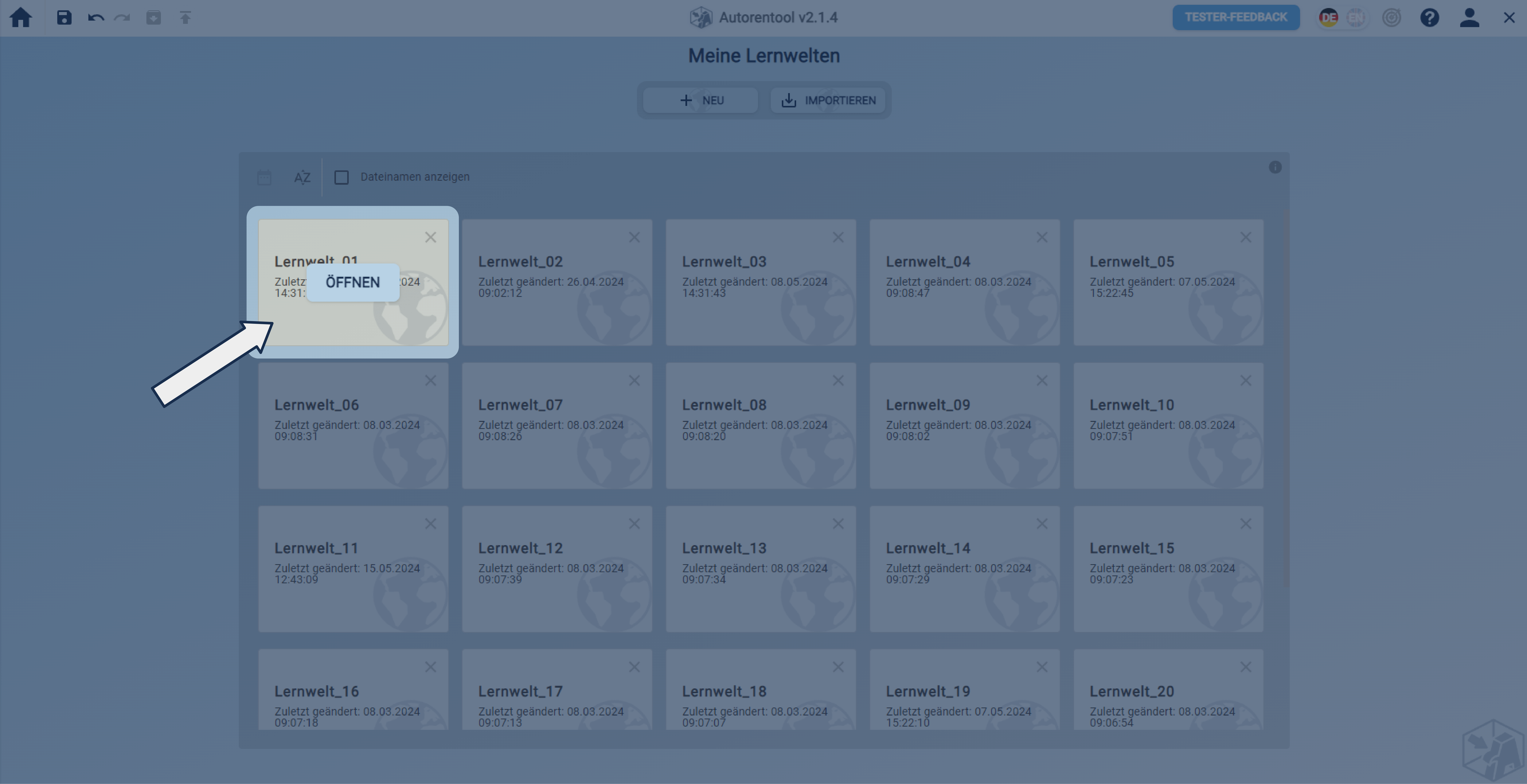 Fahren Sie mit der Maus über die zu öffnende Lernwelt.
