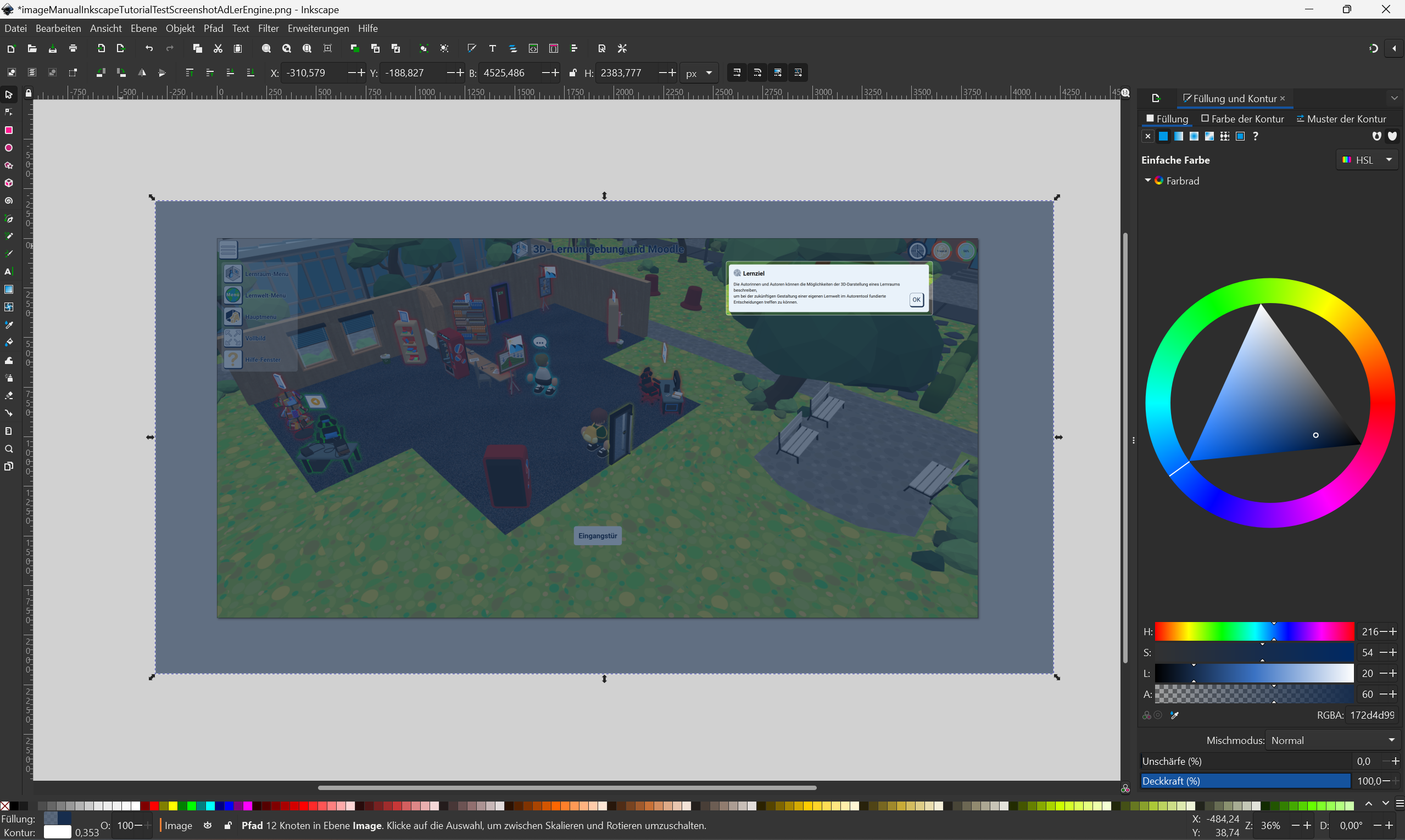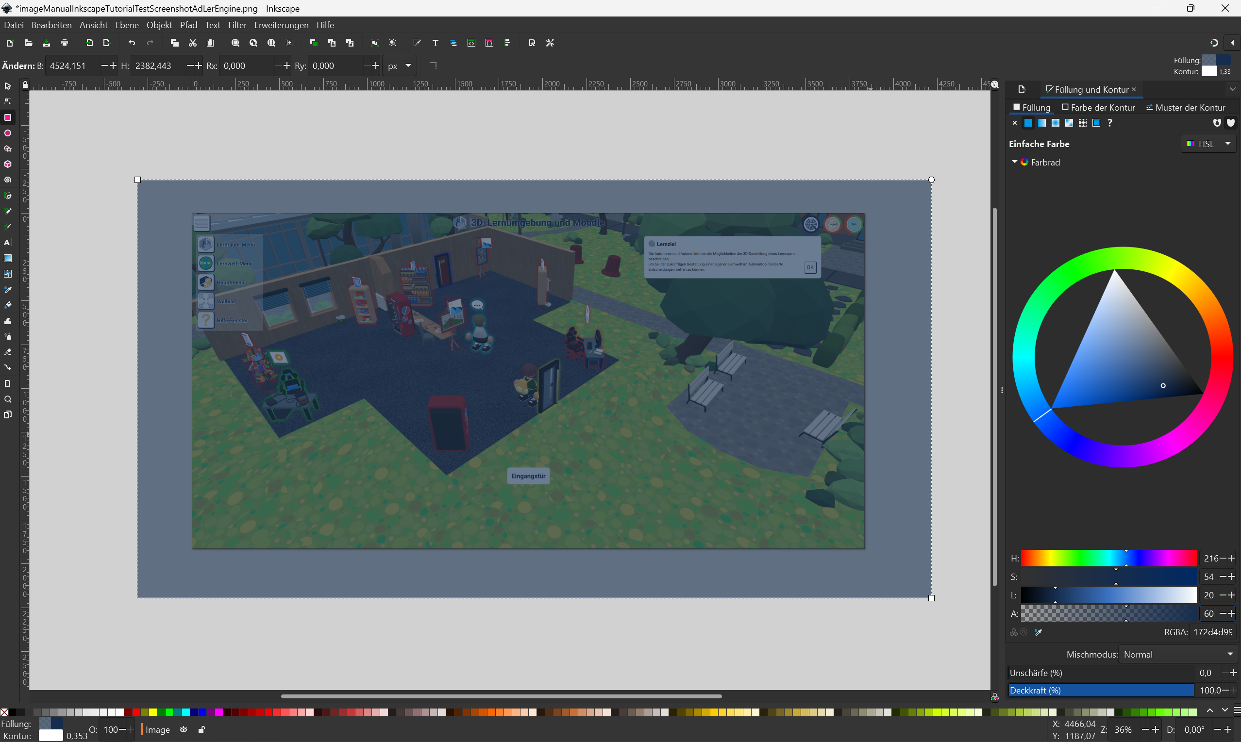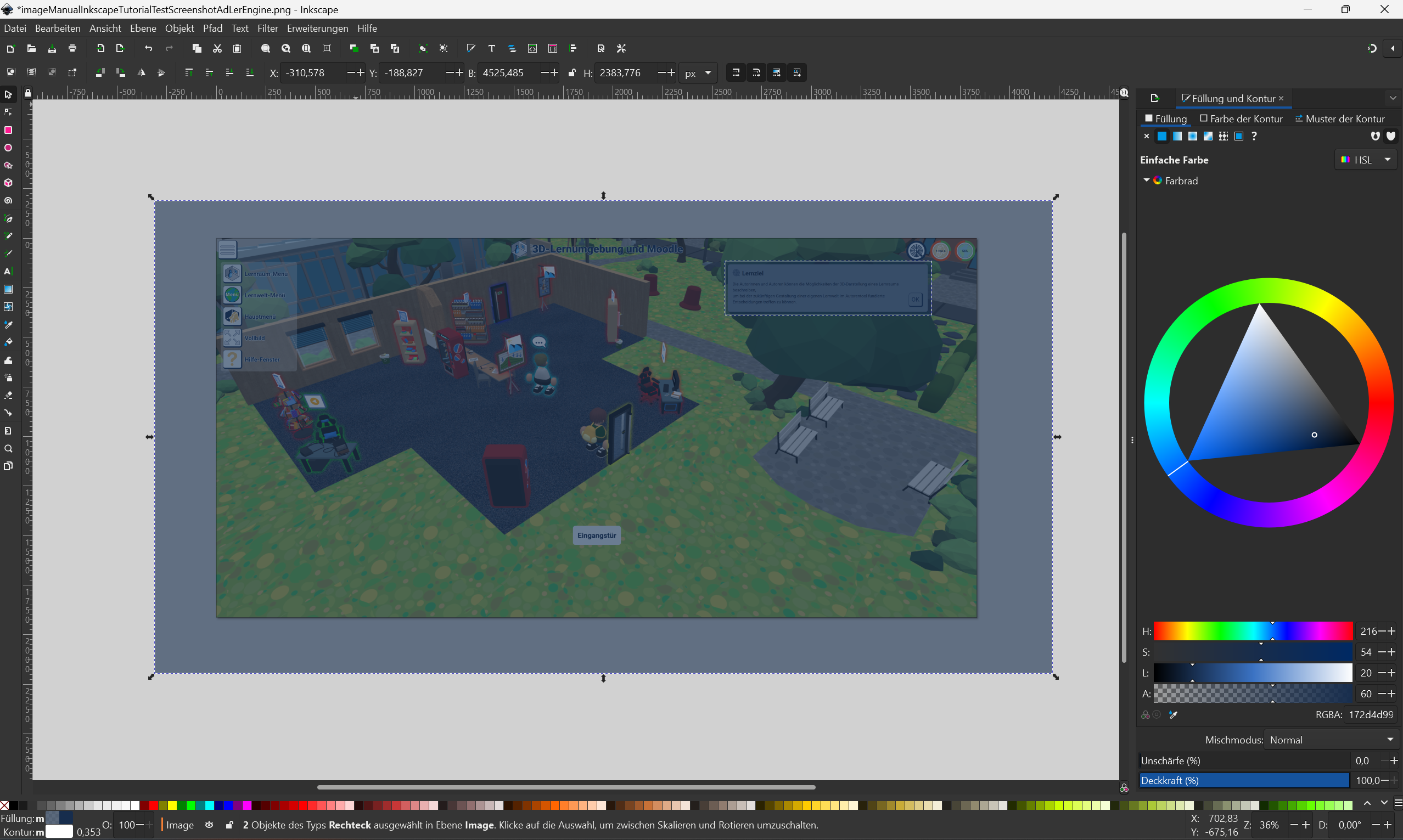 Einfügen einer Hervorhebung in einem Screenshot für die AdLer Dokumentation mit Inkscape