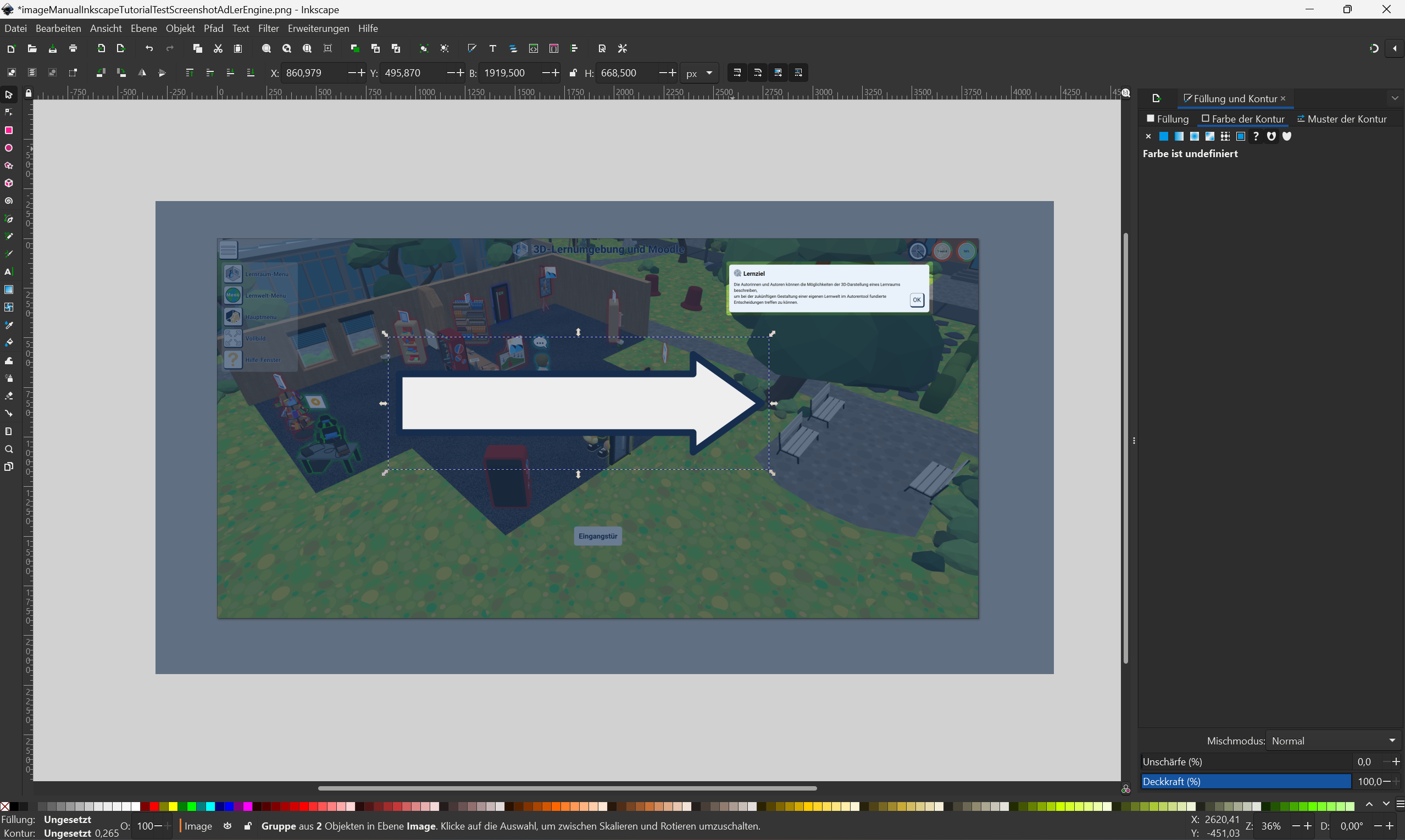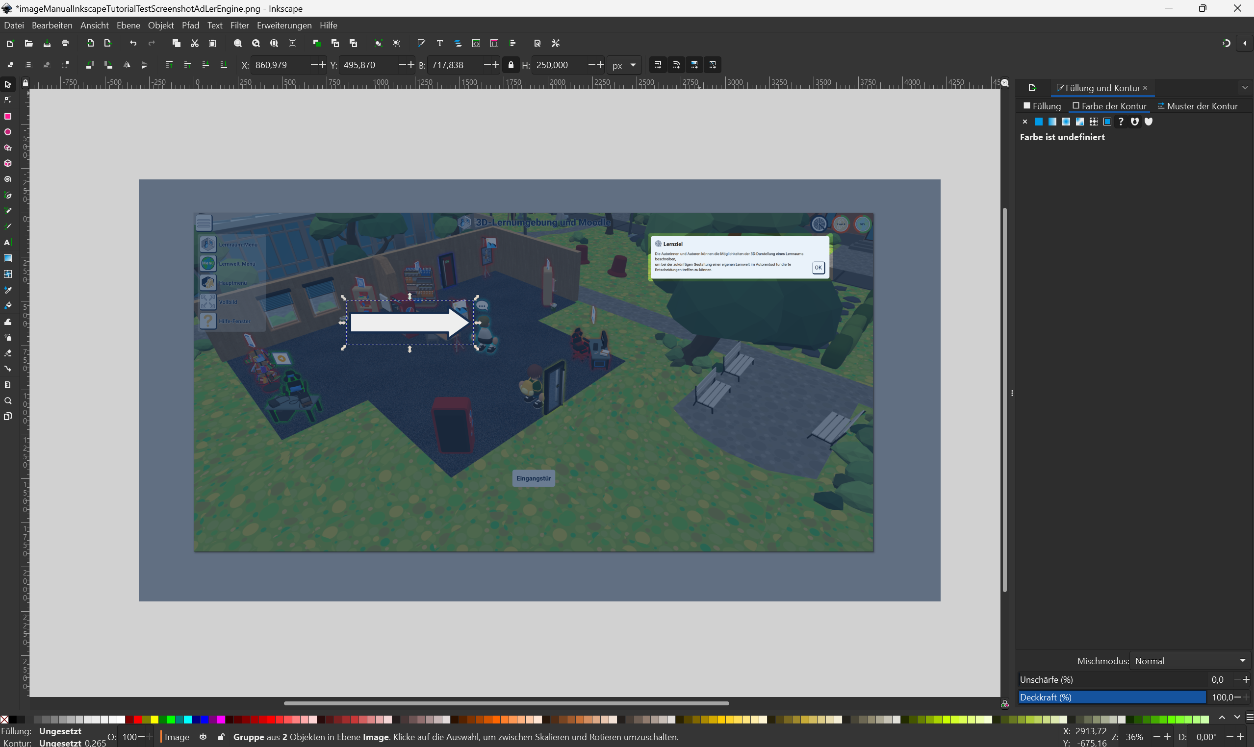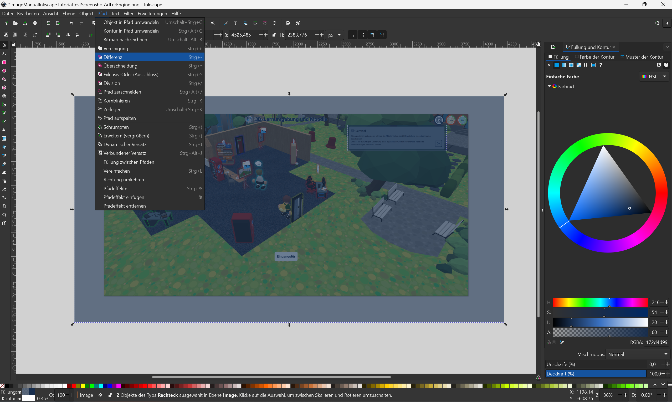 Einfügen einer Hervorhebung in einem Screenshot für die AdLer Dokumentation mit Inkscape