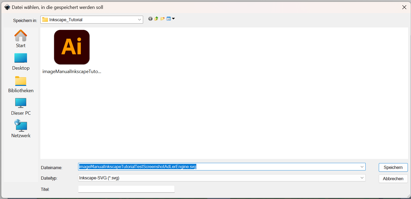 Wählen Sie nun den Dateityp Inkscape-SVG(*.svg) aus.