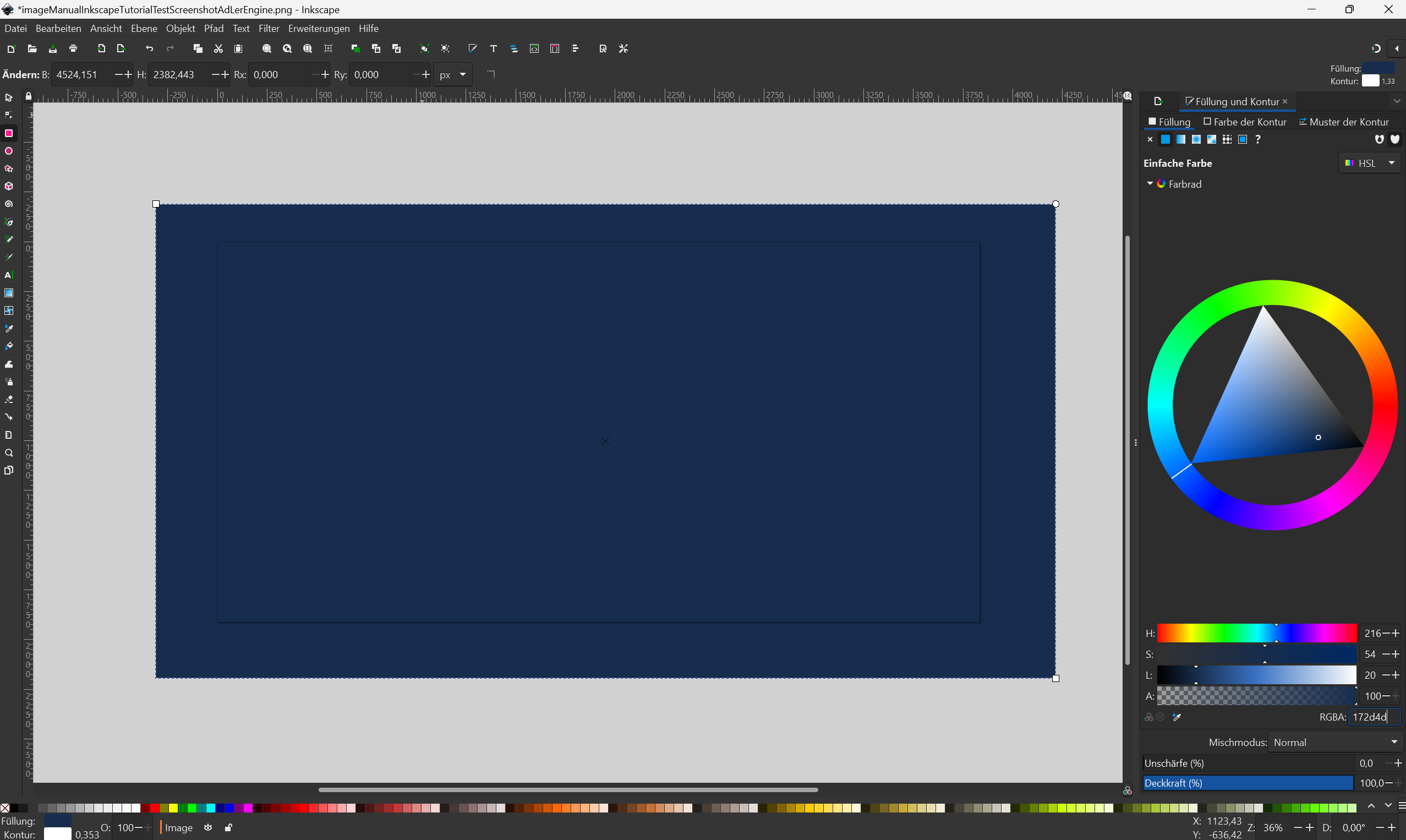 Tippen Sie die benötigte Farbe in das Farbauswahlfeld im Reiter Füllung im rechten Teil der Programmoberfläche ein. Der benötigte Farbcode lautet: #172d4d
